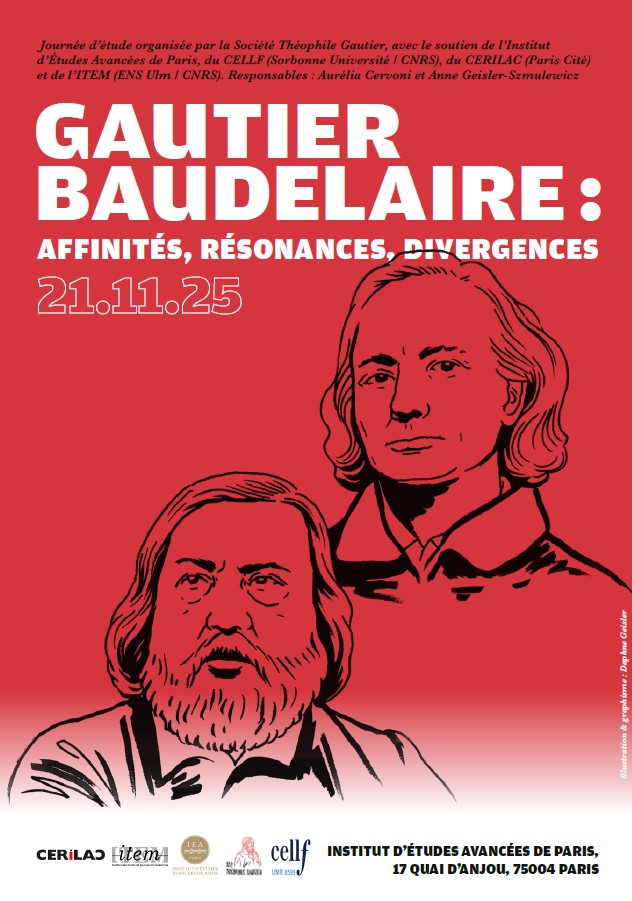 Journée d’étude organisée par la Société Théophile Gautier, avec le soutien de l’Institut d’Études Avancées de Paris, du CELLF (Sorbonne Université / CNRS), du CERILAC (Paris Cité) et de l’ITEM (ENS Ulm / CNRS). Responsables : Aurélia Cervoni et Anne Geisler-Szmulewicz