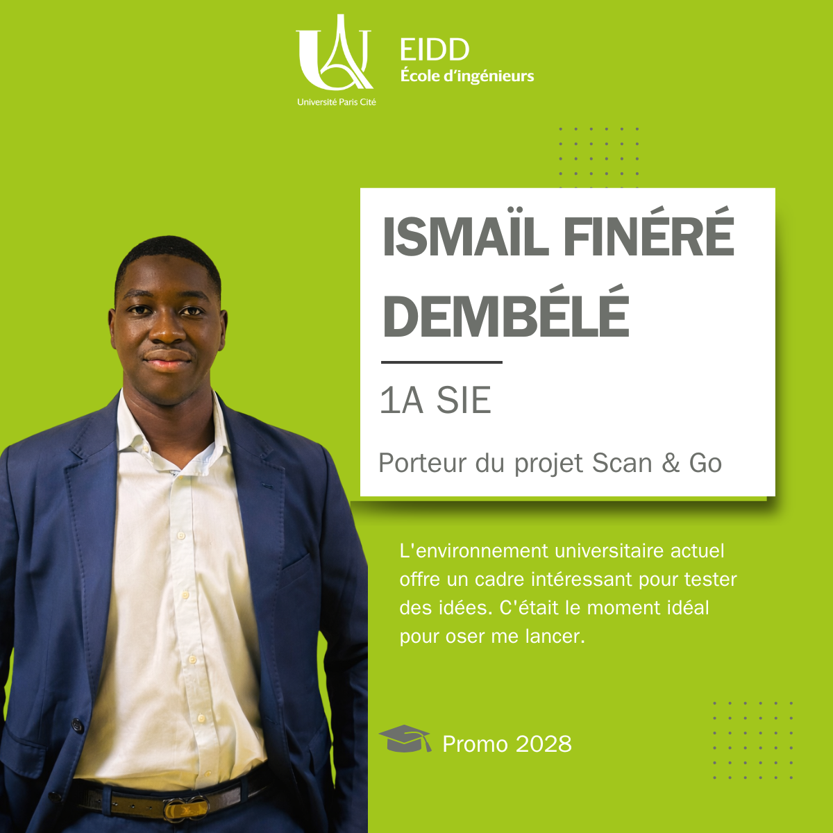 Pour Ismail Finéré DEMBÉLÉ, élève de première année en spécialité Systèmes informatiques embarqués (SIE) et porteur du projet Scan & Go, « L’idée est née d’une frustration du quotidien que nous partageons tou·te·s : le temps perdu dans les hypermarchés à chercher un produit spécifique, puis l’attente interminable en caisse. »