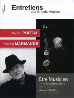 Même après son départ à la retraite, Francis Marmande participe aux Entretiens des Grands Moulins, en décembre 2010, et y échange avec Michel Portal, clarinettiste et saxophoniste, figure majeure du jazz français.