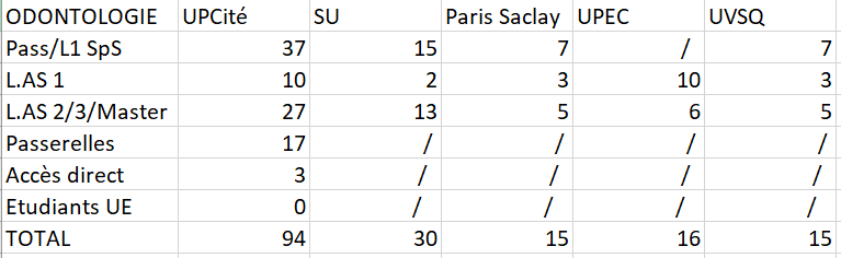 Odontologie – Capacités totales d’accueil par filière et par parcours pour la rentrée Universitaire 2026-2027