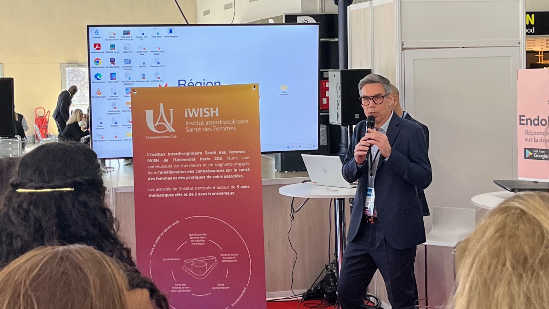 L’institut a présenté ses travaux et innovations en santé des femmes, un domaine encore trop souvent sous-représenté dans la recherche. Valérie Pécresse, Présidente du Conseil Régional d’Île-de-France, a honoré le stand de sa visite en fin de matinée, soulignant l’importance des initiatives portées par iWISH.