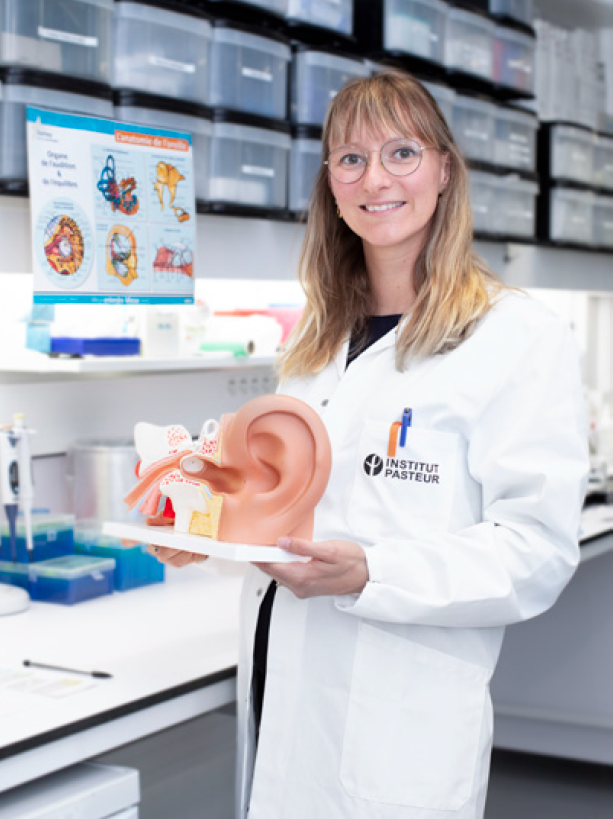 Sabrina Mechaussier est une post-doctorante passionnée depuis toute petite par les sciences et la découverte du monde qui l’entoure. Fascinée par les maladies génétiques dès le lycée, elle a débuté son parcours en biologie moléculaire et cellulaire avant de rejoindre l’Institut Pasteur pour étudier les formes génétiques de neuropathies auditives. Rigoureuse et persévérante, elle concilie sa carrière scientifique avec sa vie de famille, un équilibre qui lui est fondamental. Ses travaux contribuent à une meilleure compréhension des mécanismes liés à la surdité génétique, visant à développer de nouvelles stratégies thérapeutiques pour les patients.