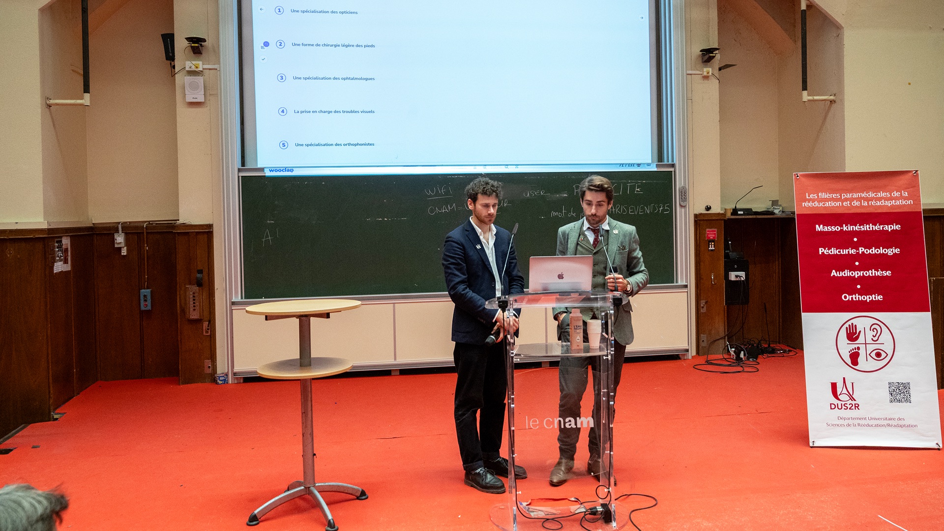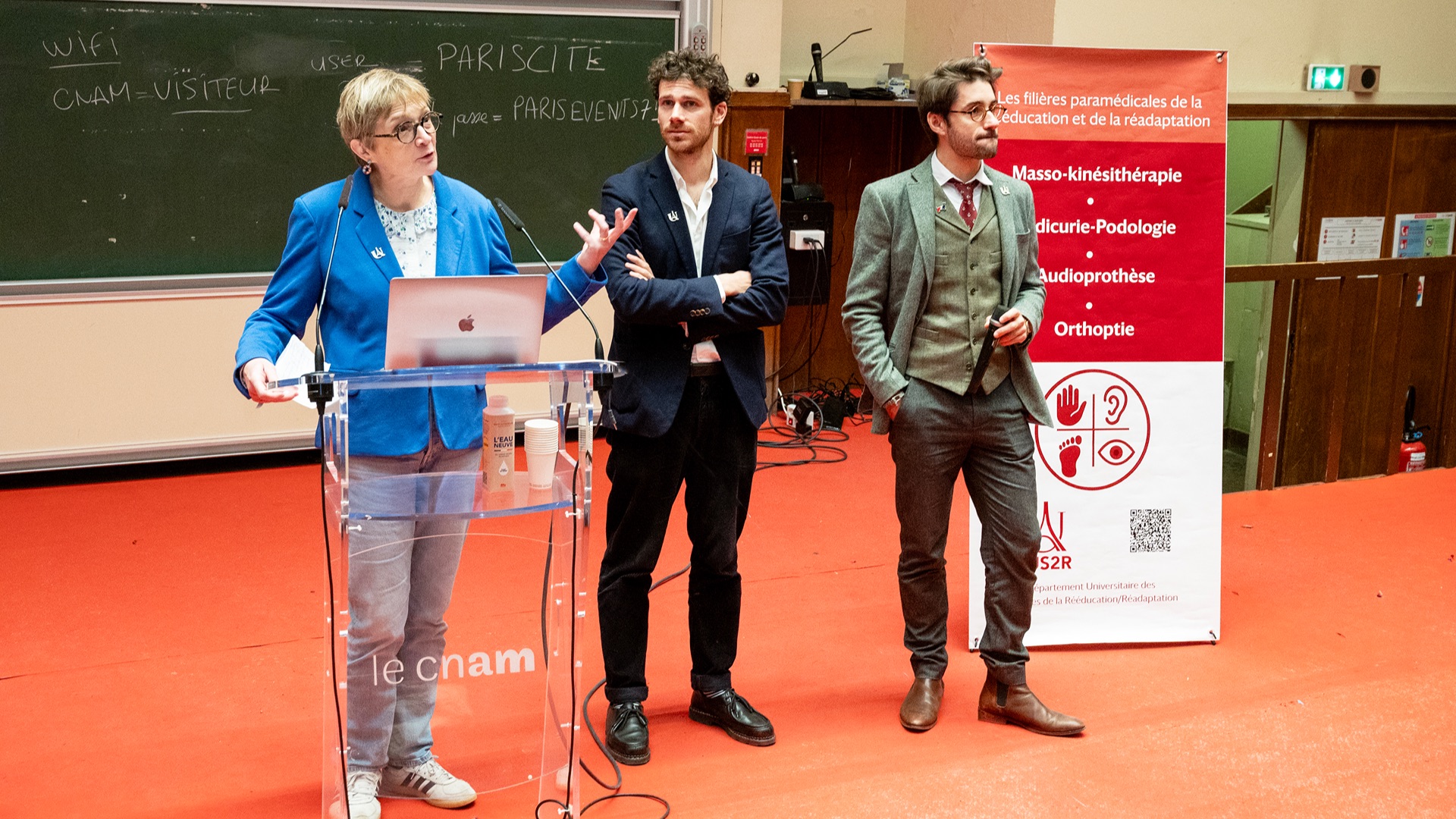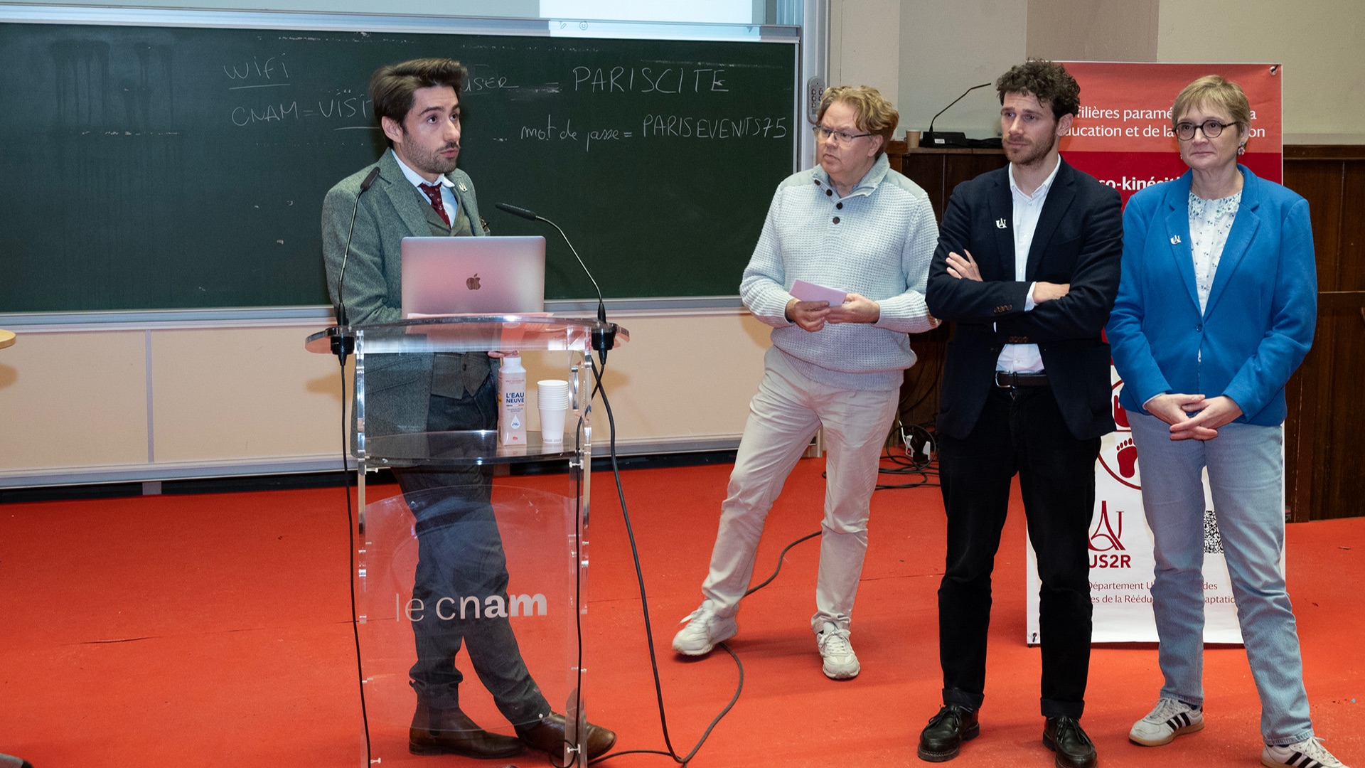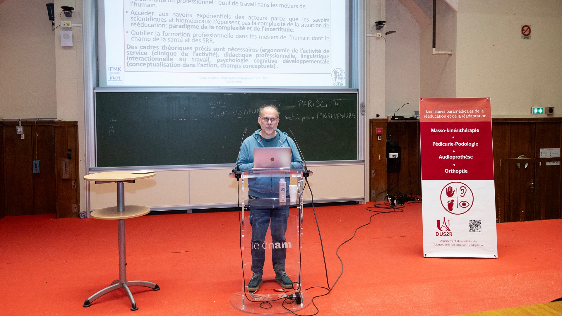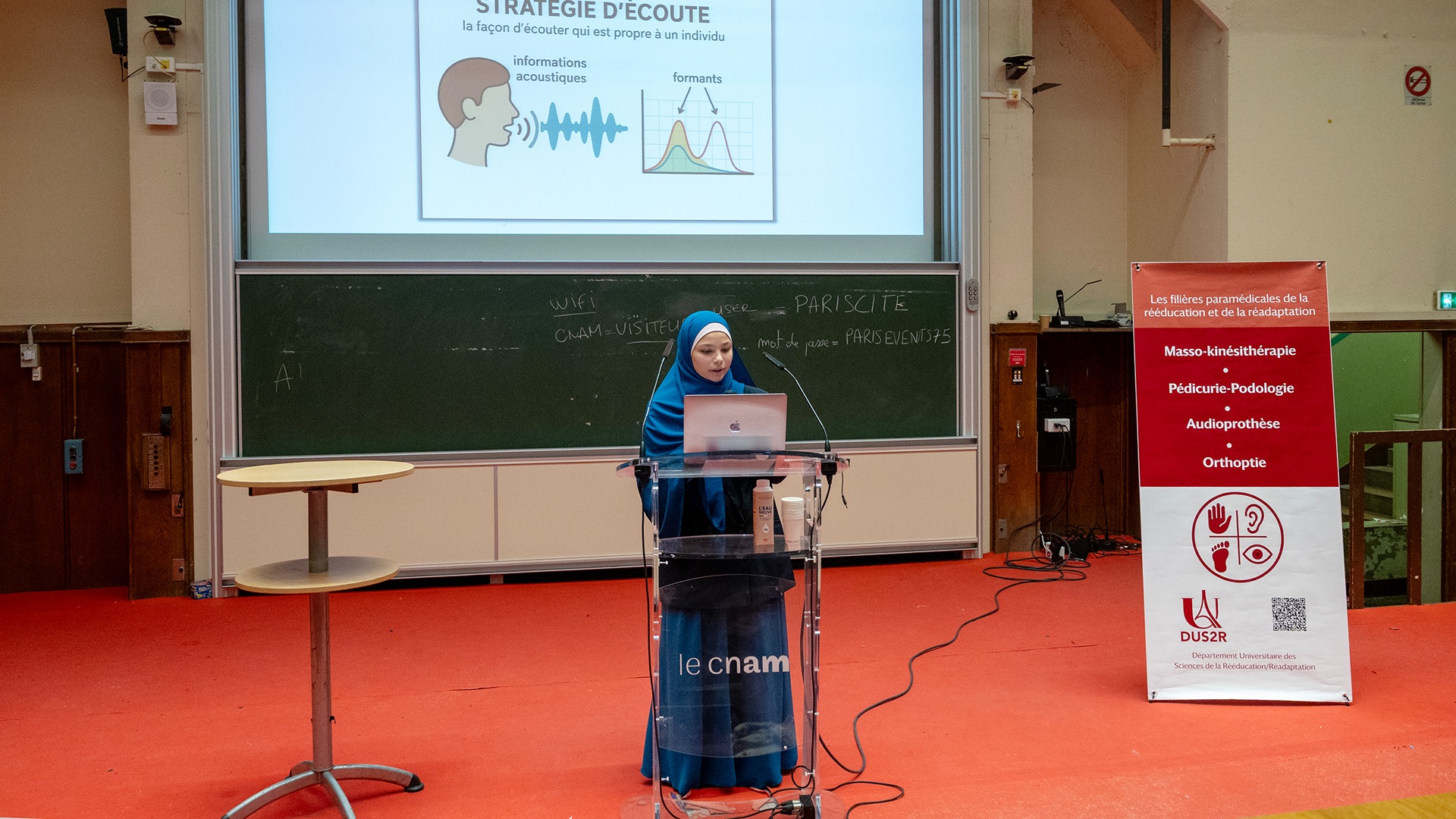 Le Département Universitaire de Sciences de la Rééducation et de la Réadaptation (DUS2R) de la Faculté de Santé a organisé, le mardi 18 novembre 2025 dans les locaux du CNAM, son troisième séminaire scientifique. Celui-ci a été riche en échanges et en valorisation des travaux étudiants et enseignants- chercheurs confirmés. L’événement a réuni la communauté pédagogique et scientifique autour de grands champs de la recherche intéressant spécifiquement les 4 formations du DUS2R  : masso-kinésithérapie, pédicurie-podologie, orthoptie et audioprothèse.