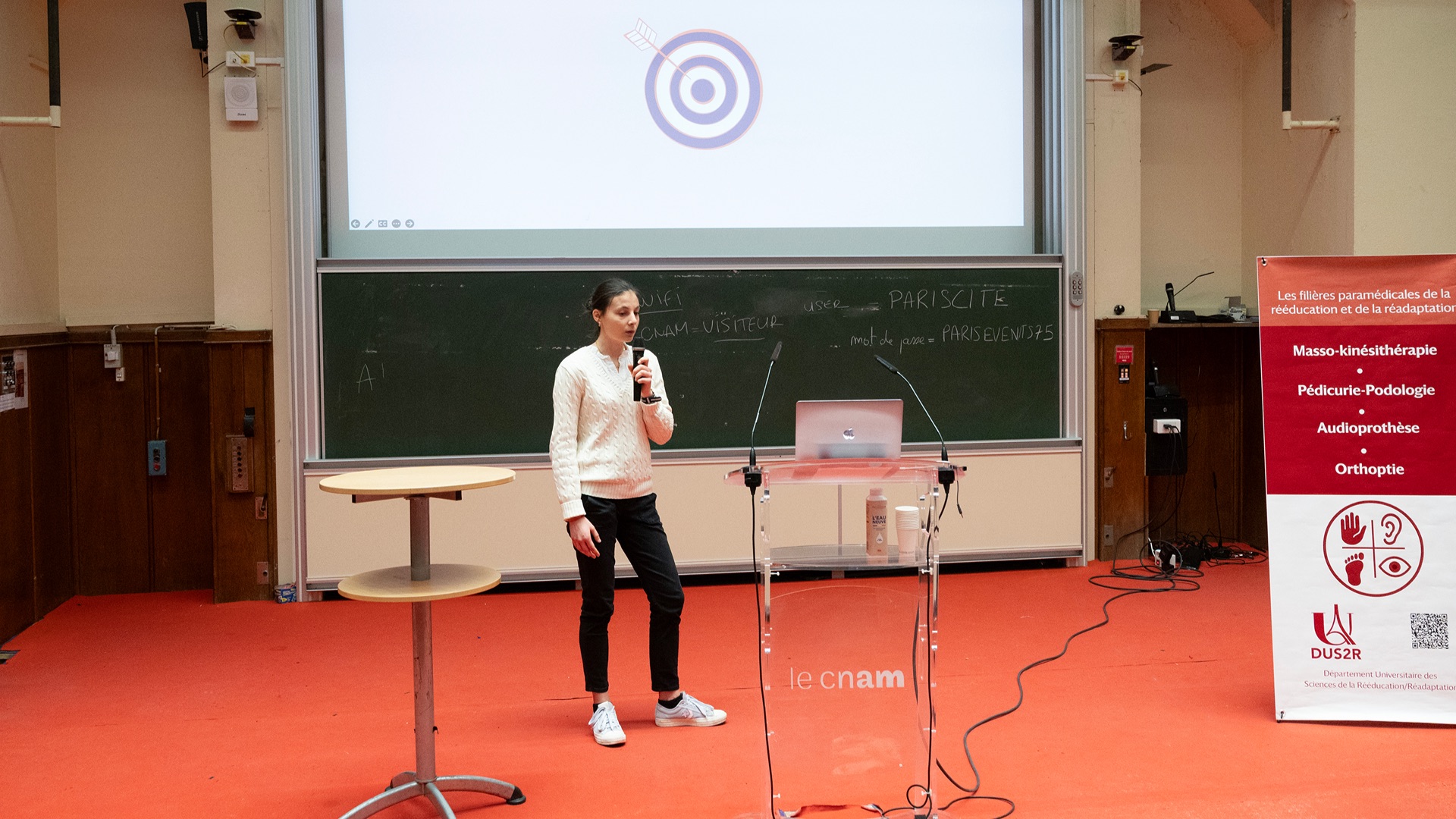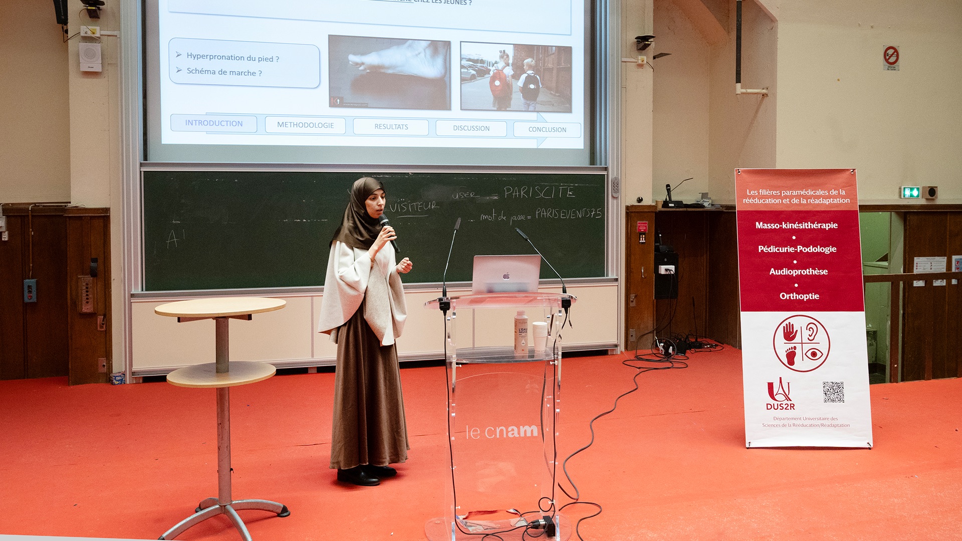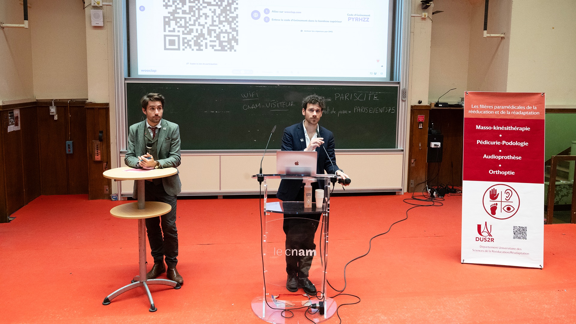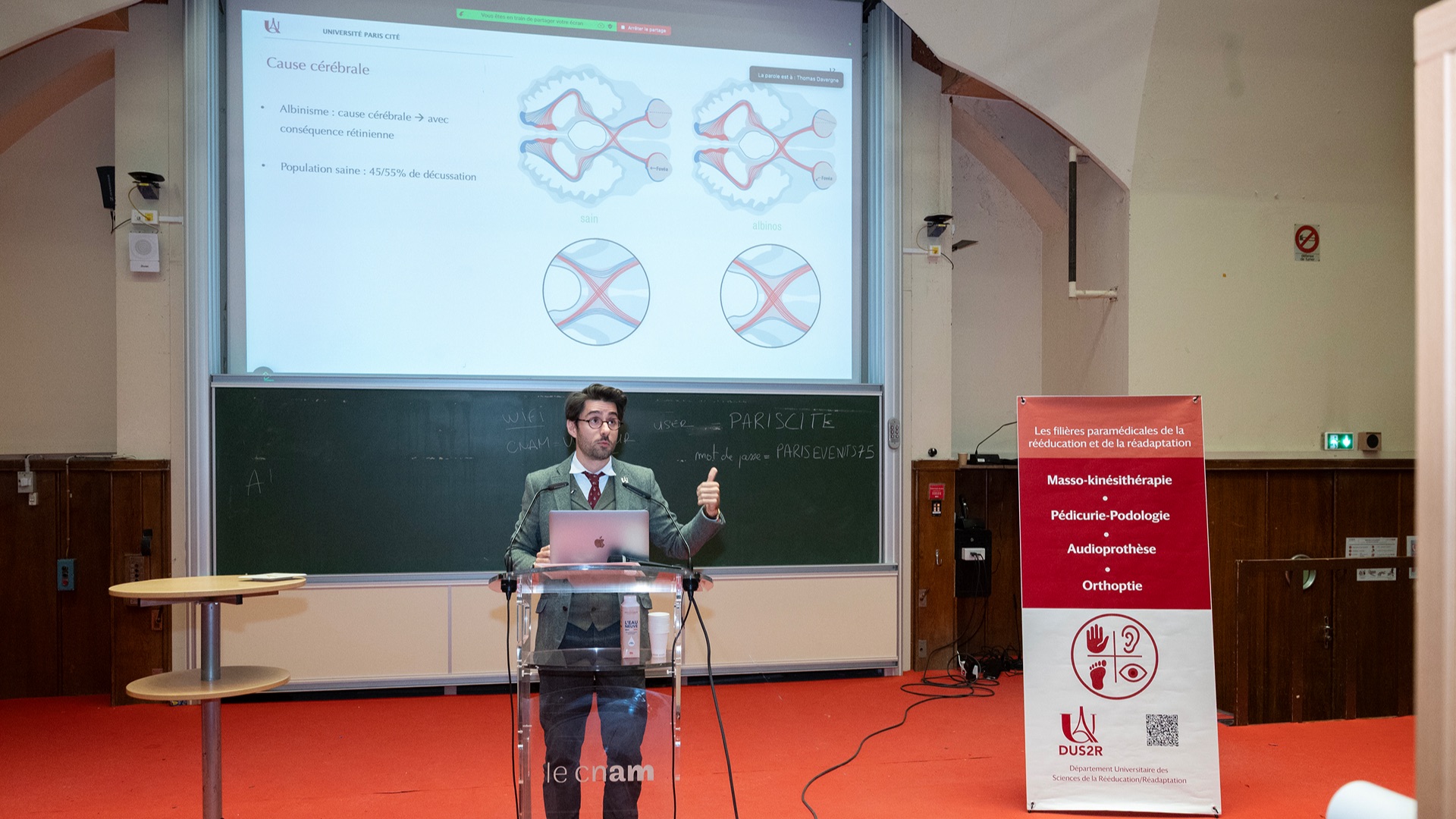 Le Département Universitaire de Sciences de la Rééducation et de la Réadaptation (DUS2R) de la Faculté de Santé a organisé, le mardi 18 novembre 2025 dans les locaux du CNAM, son troisième séminaire scientifique. Celui-ci a été riche en échanges et en valorisation des travaux étudiants et enseignants- chercheurs confirmés. L’événement a réuni la communauté pédagogique et scientifique autour de grands champs de la recherche intéressant spécifiquement les 4 formations du DUS2R  : masso-kinésithérapie, pédicurie-podologie, orthoptie et audioprothèse.